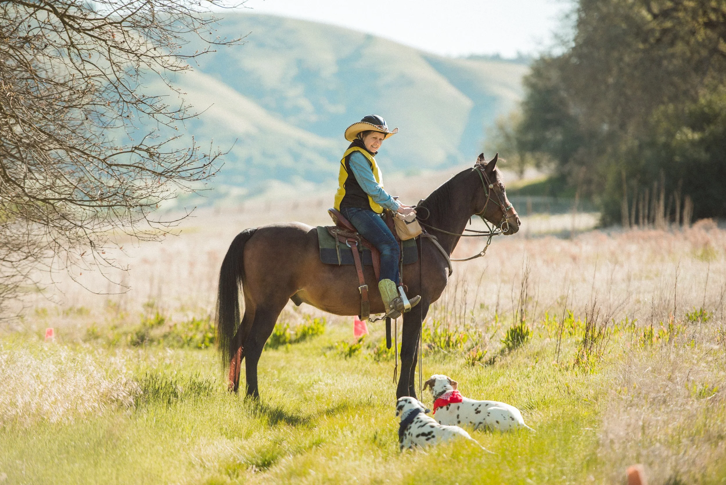I’ve grown up with dogs of many different breeds, though usually hunting dogs. I love them all, but when looking for a new dog back in the 80s, my husband Greg suggested getting the AKC book of dog breeds and shopping with an open mind and a list of desired characteristics, which we did. We had kids, so needed a dog with a good disposition for a family. I loved horses, so I needed a dog who would enjoy accompanying me on rides and horse camping in the mountains. We live in California where the summers are hot, and the foxtails and other stickers are numerous, so we needed a dog with a short coat.